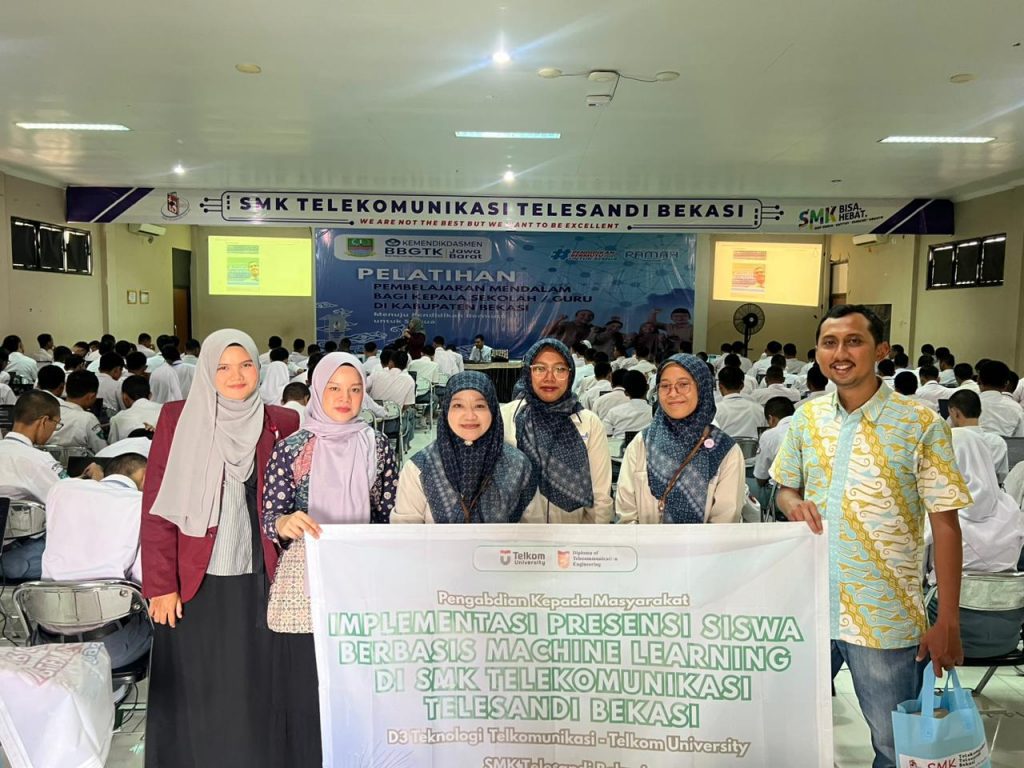Program Studi D3 Teknologi Telekomunikasi Telkom University berhasil melaksanakan kegiatan Pengabdian kepada Masyarakat (Abdimas) di SMK Telkomunikasi Telesandi Bekasi, yang berfokus pada implementasi inovatif sistem Presensi Siswa Otomatis Berbasis Machine Learning menggunakan teknologi Face Recognition. Kegiatan ini bertujuan untuk mendukung digitalisasi administrasi sekolah, meningkatkan efisiensi dan akurasi absensi, serta menjadi wujud nyata komitmen prodi dalam mentransfer ilmu pengetahuan dan teknologi tepat guna kepada mitra pendidikan di Bekasi.